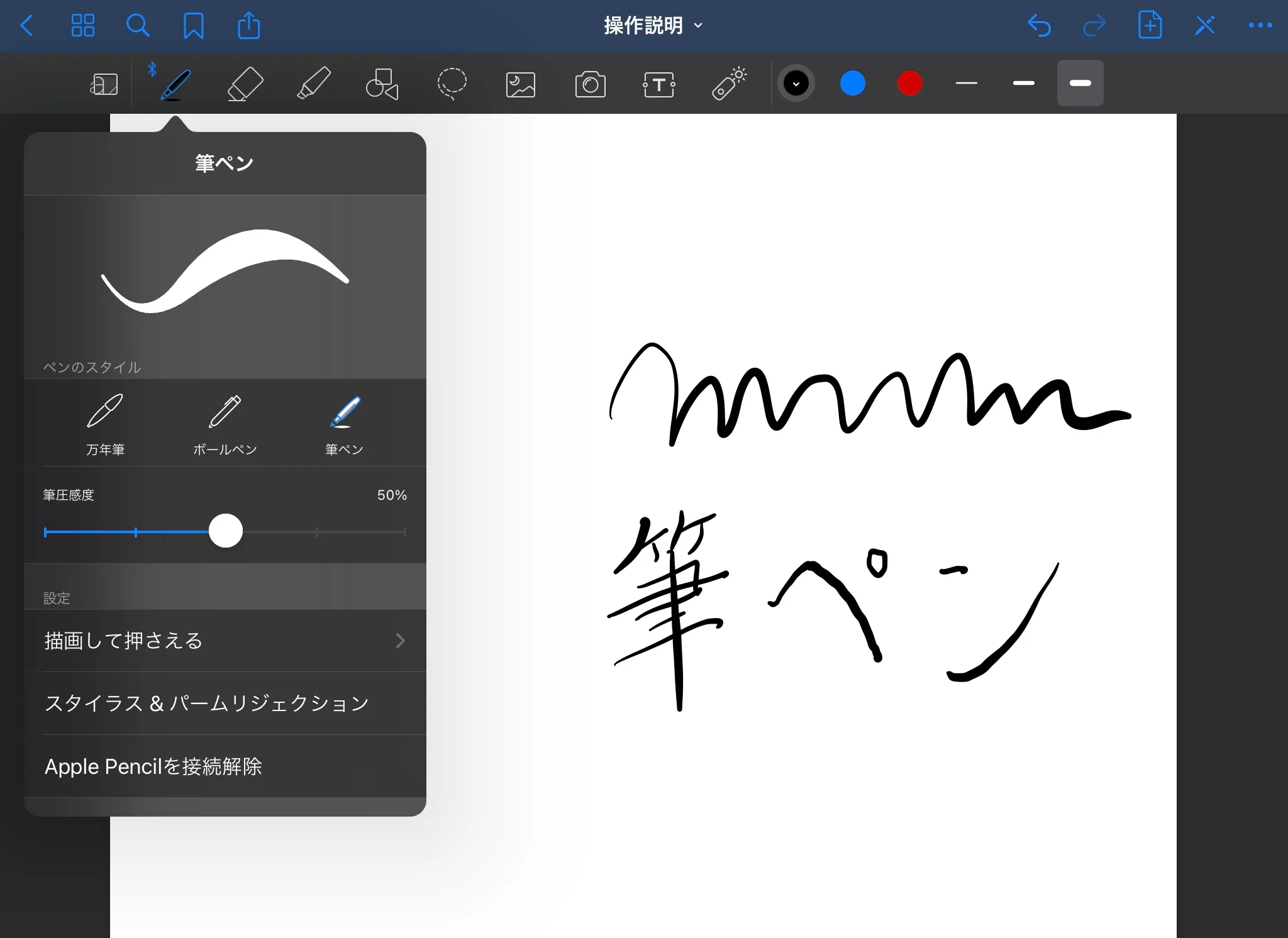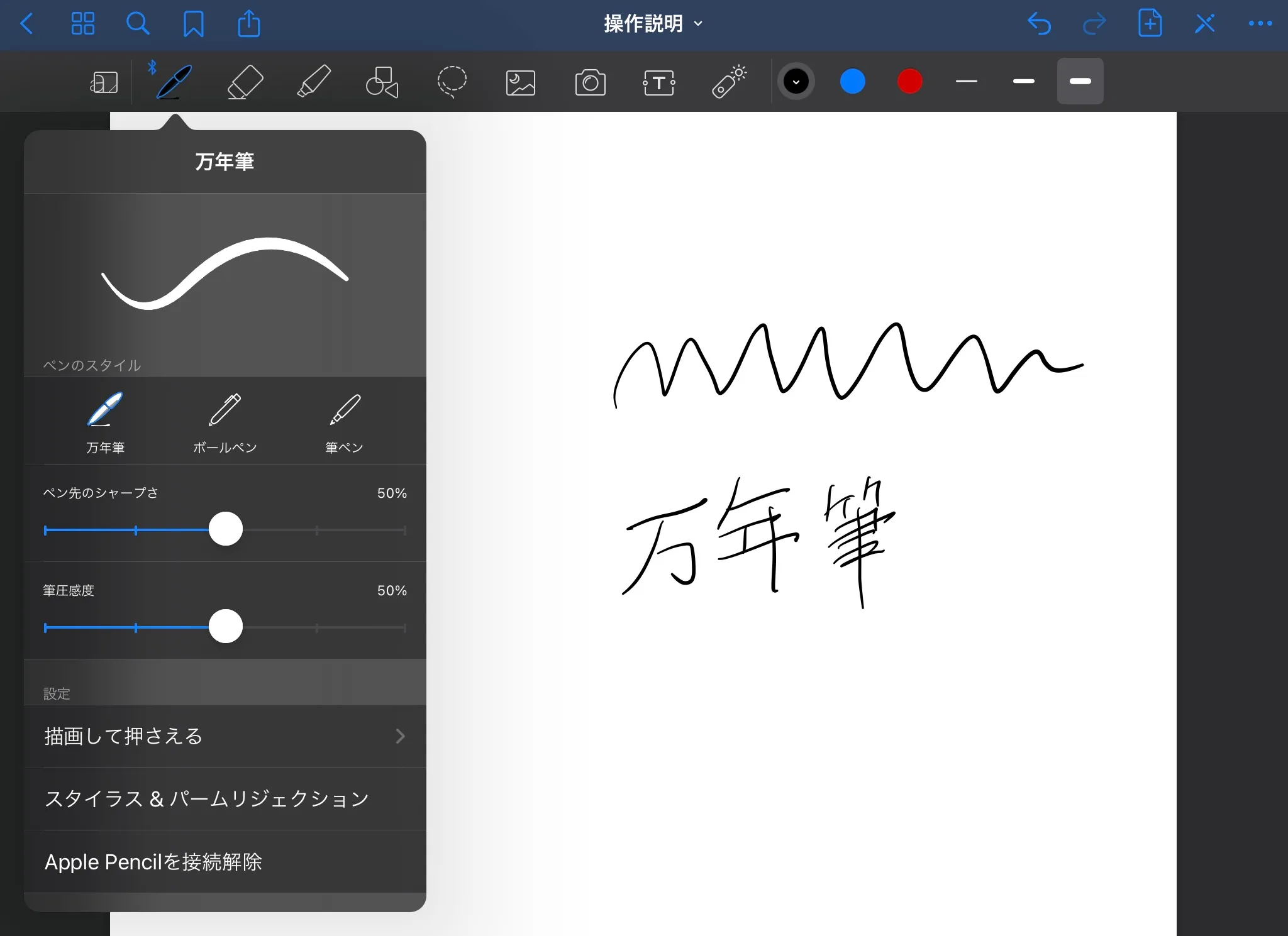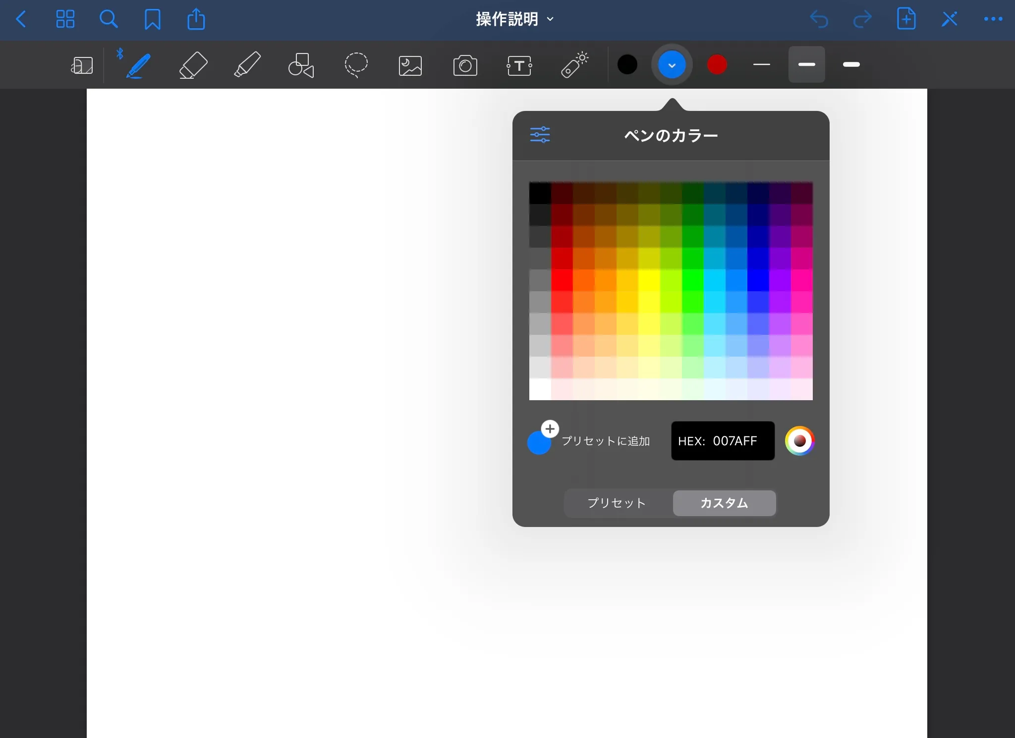 下の画像のように,ペンのカラーや太さを変更することが可能です.