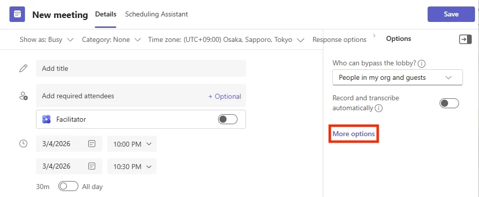 - Select “Options” or “Meeting options”.