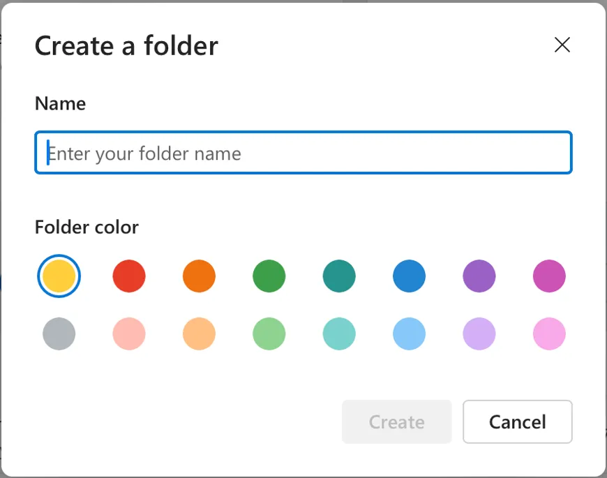 3. Please click on “Create” at the bottom of the screen. The new folder will be created.