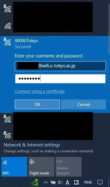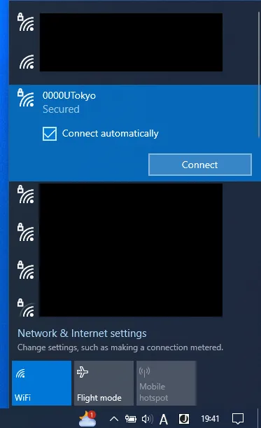 UTokyo Wi-Fi is a Wi-Fi service available to members of the University of Tokyo for educational and research purposes. Please refer to UTokyo Wi-Fi page first, which summarizes the general instructions for using the UTokyo Wi-Fi. If you still need the detailed instructions for terminal of Windows, please refer to this page.